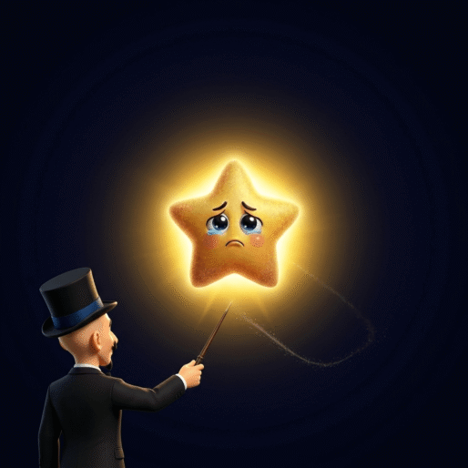 Naquela mesma noite, Mr Bright estava caminhando pelo jardim depois do espetáculo. Ele olhou para o céu e percebeu a pequena estrela inquieta piscando de forma diferente.